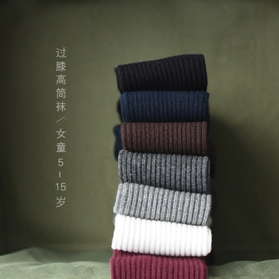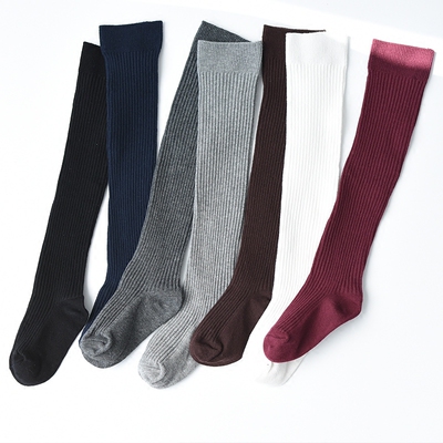 Cô gái trên đầu gối vớ cao trẻ em vớ ống mùa xuân và mùa thu nửa vớ màu rắn cotton lớn vớ trẻ em - Vớ thời trang bé gái