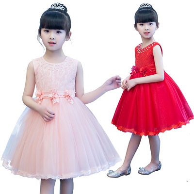 Cô gái váy đỏ công chúa váy trẻ em sinh nhật bé gái cô gái mùa hè sưng húp - Váy trẻ em đồ cô dâu chú rể trẻ em