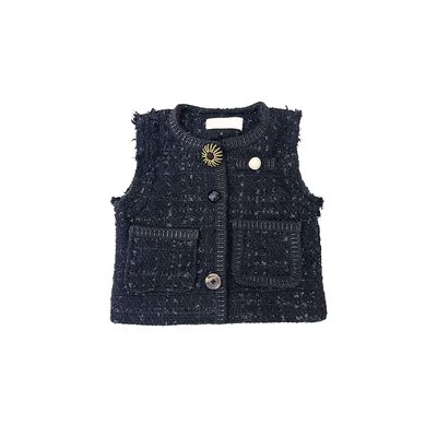 Cô gái vest bé đan thời trang áo vest không tay trong nước hoa nhỏ bé dệt len ​​len đỏ vest - Áo ghi lê áo len ba lỗ cho bé