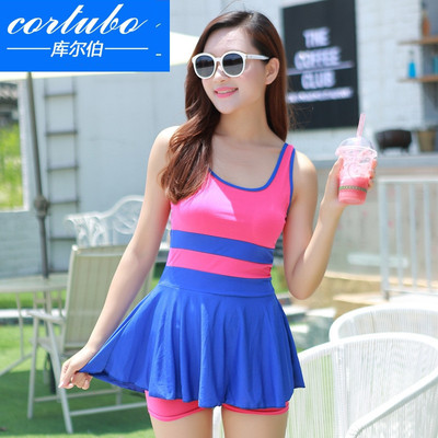 CORTUBO Xiêm váy xòe áo tắm cạp cao eo phẳng màu đơn giản thời trang mới đồ bơi chia áo tắm - Bộ đồ bơi hai mảnh áo bơi 2 mảnh