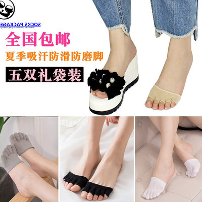Cotton mùa hè vô hình vớ năm ngón tay của phụ nữ cao gót chân trước pad nửa ngón chân vớ thuyền mồ hôi mặc năm ngón tất đùi lót lông