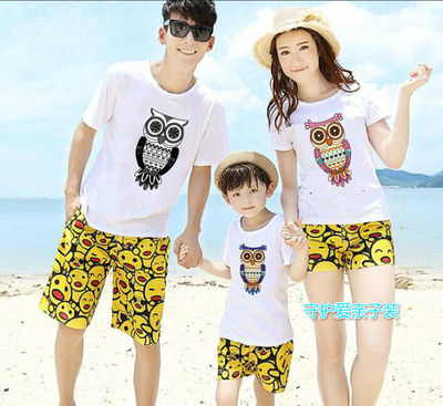 Cú bố mẹ con mùa hè 2018 xuân mẹ và con gái mẹ mùa hè ngắn tay ba gia đình đầy đủ gia đình quần áo gia đình đi biển