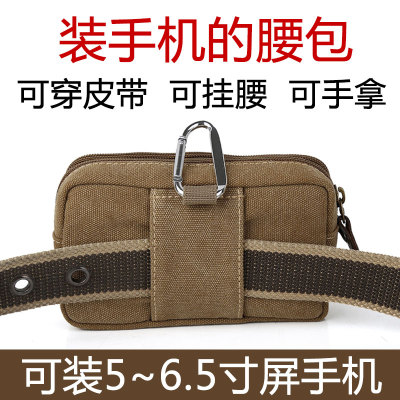 Của nam giới túi điện thoại di động mặc túi vành đai của nam giới cao tuổi eo điện thoại di động túi treo eo bag chữ thập phần 6 inch túi vải tui xach nu