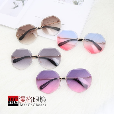 Đa giác không khung cắt tỉa kính râm tròn thủy triều phụ nữ Gradient đại dương màu sắc kính mát thanh lịch UV mat kinh Kính đeo mắt kính