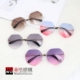Đa giác không khung cắt tỉa kính râm tròn thủy triều phụ nữ Gradient đại dương màu sắc kính mát thanh lịch UV mat kinh