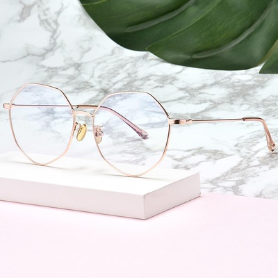 Đa giác lưới màu đỏ với kính cận độ độ nữ khung kính retro mặt phẳng không đều mặt phẳng gương nam - Kính kính thời trang nữ Kính