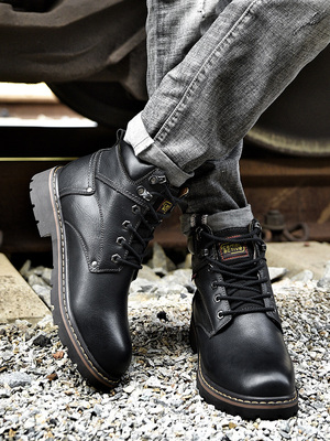 Da lạc đà Đức da mùa đông năng động Martin ủng nam khởi động cộng với nhung quân đội ấm giày cao giày nam tuyết - Giày ống giầy tây