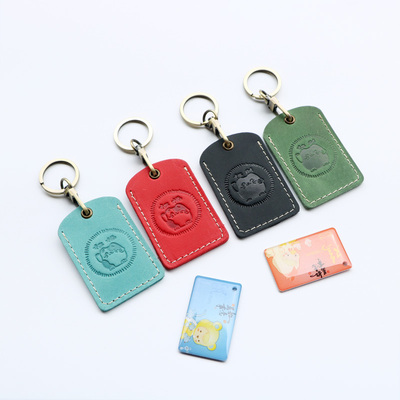 Da mini bus thẻ bảo vệ bìa da mini cộng đồng kiểm soát truy cập thẻ set Hồng Kông Bạch Tuộc bộ keychain ví đựng thẻ charles and keith Hộp đựng thẻ
