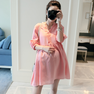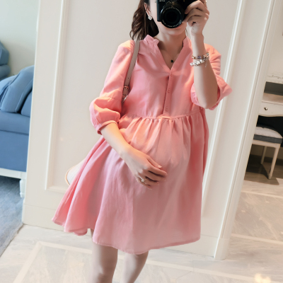 Đầm bà bầu xuân hè phiên bản Hàn Quốc của váy búp bê mới thả váy bà bầu mùa hè cotton và vải lanh dài triều - Áo thai sản đầm bầu mami Áo thai sản
