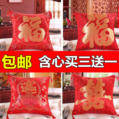 Đám cưới gối sofa đệm đám cưới màu đỏ đỏ phước lành lễ hội gối xe văn phòng gối Trung Quốc satin đặt với lõi Bộ chăn gối văn phòng hình thú