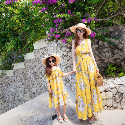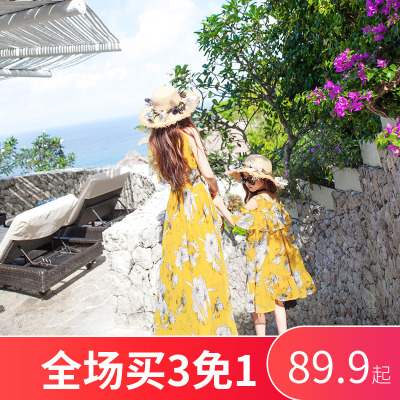 Đầm dự tiệc hè hè cho bé mẹ 2019 bên bờ biển mới nghỉ hè mẹ chồng phiên bản Hàn Quốc - Trang phục dành cho cha mẹ và con áo gia đình 3 người Trang phục dành cho cha mẹ và con