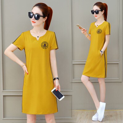 Đầm nữ mùa xuân hè 2019 Phiên bản Hàn Quốc mùa hè nhỏ tươi mới Áo thun nữ cổ chữ V rộng một chiếc váy chữ thủy triều - A-Line Váy váy chữ a liền công sở