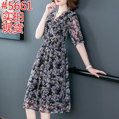 Đầm voan cổ chữ V nữ hè 2019 khí chất mới Slim slim Một chiếc váy chữ - A-Line Váy váy chữ a ngắn A-Line Váy