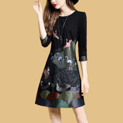Dan Mu Nier 2018 mùa thu mới của phụ nữ đi làm tay áo thêu bảy điểm Slim a váy chữ 8112 những mẫu đầm voan xòe đẹp