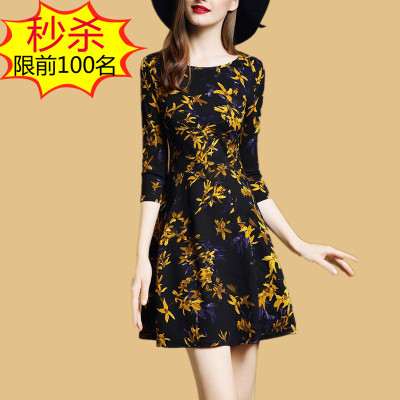 Dan munier 2018 mùa thu mới của phụ nữ bảy- điểm tay áo in thời trang đầm mỏng một từ váy 8247 mẫu váy xòe A-Line Váy