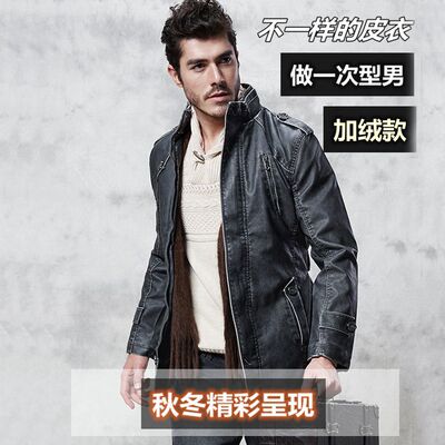 Đàn ông hợp thời trang cộng với áo khoác nhung ấm áp phần da dài Vai mỏng cổ áo cổ lông trẻ trung một chiếc áo gió bằng da pu áo phao lông vũ