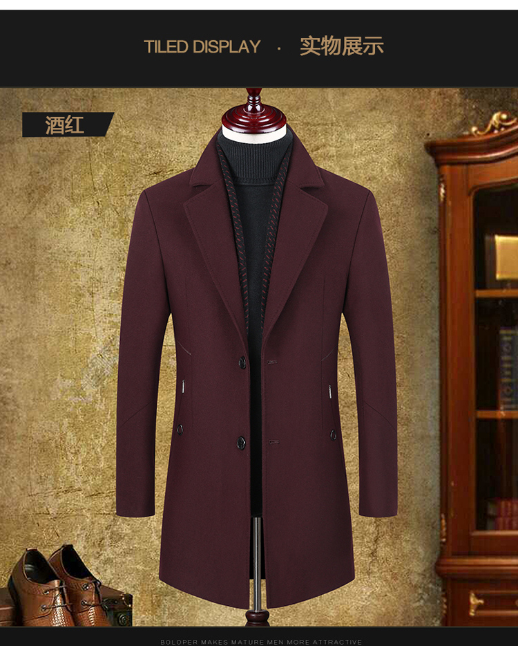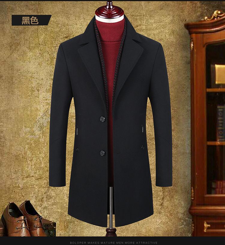 Đàn ông trung niên len len 40 áo khoác 50 tuổi phù hợp với cổ áo Nizi áo dày phần dài Nizi cha quần áo mùa đông áo len nam