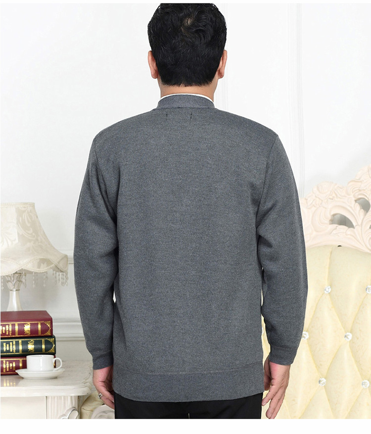 Đàn ông trung niên mùa thu đông mới cộng với áo len dệt kim nhung dày Bố mặc áo len đan cổ chữ V blazer nam