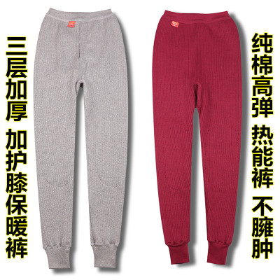 Đàn ông và phụ nữ dày cao dây thun đầu gối miếng đệm eo quần ấm ba lớp dày cotton dày mùa thu quần cotton quần nóng quần legging hàn quốc Quần nóng lên