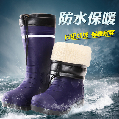 Đàn ông và phụ nữ mùa đông cộng với giày đi mưa bằng vải cotton dày cộng với nhung chống thấm nước giày chống trượt nước ấm giày bảo hiểm lao động cộng với ủng ấm mỡ giày nam chịu nước