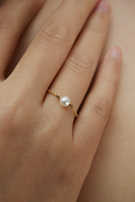 Dan Studios Pearl Girl (Lấp lánh) Ngọc trai nước ngọt K Gold Handmade Chuỗi vòng tùy chỉnh - Nhẫn nhẫn lông voi