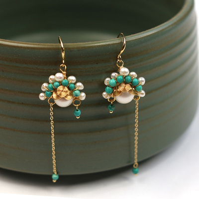 Dao Ma Dan Bắc Kinh Opera Mặt nạ Ngọc trai Tự nhiên Handmade Phong cách Dân tộc Vòng cổ Trang sức Bông tai Ngọc lam Nhẫn - Nhẫn nhẫn hột xoàn Nhẫn