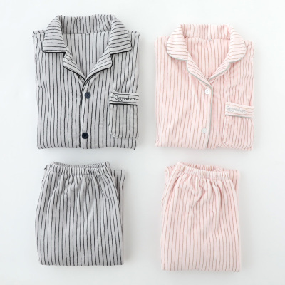 Đảo Nhật Bản nhung đôi đồ ngủ nam và nữ mùa thu đông dịch vụ nhà mỏng phù hợp với sọc đơn giản kích thước lớn áo thể thao nữ Cặp đôi
