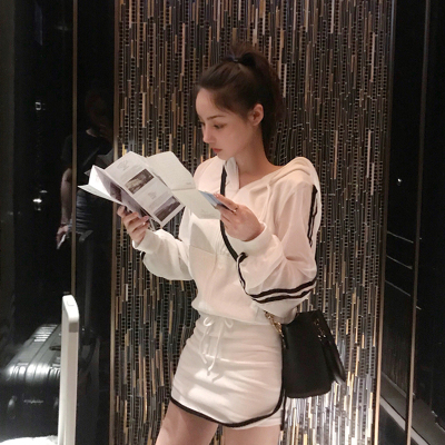 Đặt nữ Hàn Quốc phiên bản của mạng lưới lưới khâu áo len trùm đầu áo ngắn + quần short váy thể thao giản dị hai mảnh đồ bộ mùa đông nữ Bộ đồ