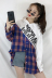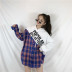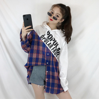 Đầu mùa thu của phụ nữ Hàn Quốc dài tay khâu trùm đầu áo thun áo len đoạn dài lỏng kẻ sọc thư T-Shirt top triều áo nữ trung niên