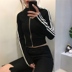 Đầu mùa xuân Hàn Quốc phiên bản của chic slim slimming ngắn dây kéo cardigan áo sơ mi của phụ nữ hoang dã dài tay ba-bar sọc áo ngắn áo jean nữ Áo khoác ngắn