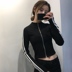 Đầu mùa xuân Hàn Quốc phiên bản của chic slim slimming ngắn dây kéo cardigan áo sơ mi của phụ nữ hoang dã dài tay ba-bar sọc áo ngắn áo jean nữ