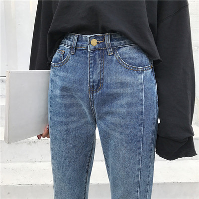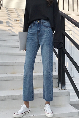 Đầu mùa xuân mới của phụ nữ dọc dải cao eo lỏng mỏng sinh viên hoang dã thẳng tóc chín điểm denim rộng chân quần phụ nữ quần bò nữ đẹp