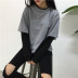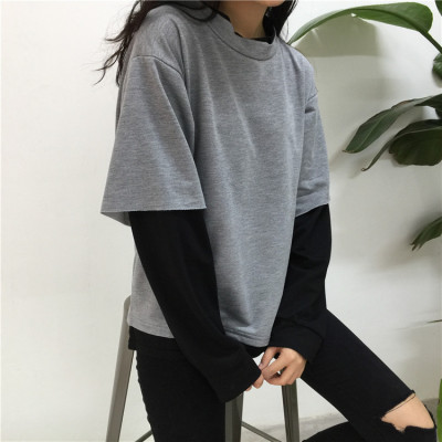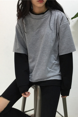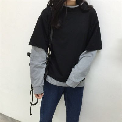 Đầu mùa xuân mới của phụ nữ giả hai dài tay khâu lỏng mỏng sinh viên giản dị hoang dã áo thun T-Shirt áo len phụ nữ áo khoác nữ trung niên