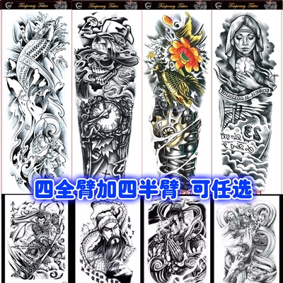 Đầy đủ cánh tay xăm dán không thấm nước nam giới và phụ nữ kéo dài 3d vô hình hoa cánh tay che mô phỏng tattoo body painting Guan Chiêng Zhao Yun hình xăm dán ngực