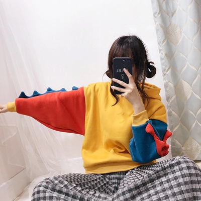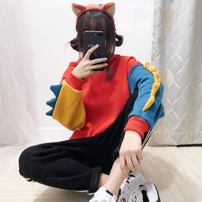 Đây là một con khủng long ~ mùa thu và mùa đông cộng với nhung lỏng màu phù hợp với áo len stereo góc gõ dễ thương mềm dễ thương áo trùm đầu ~ măng tô nữ Áo len