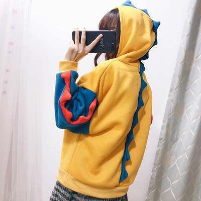 Đây là một con khủng long ~ mùa thu và mùa đông cộng với nhung lỏng màu phù hợp với áo len stereo góc gõ dễ thương mềm dễ thương áo trùm đầu ~ măng tô nữ
