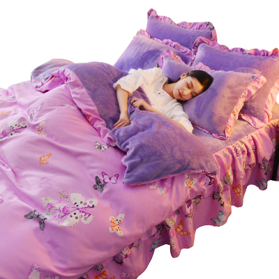 Dày lông cừu san hô ấm bốn mảnh váy flannel 1,5m 1,8m 2,0m Falais bộ đồ giường chăn ga cao cấp luxury Bộ đồ giường bốn mảnh