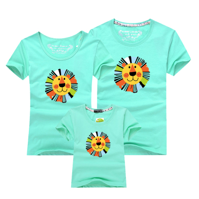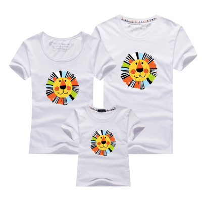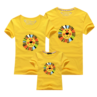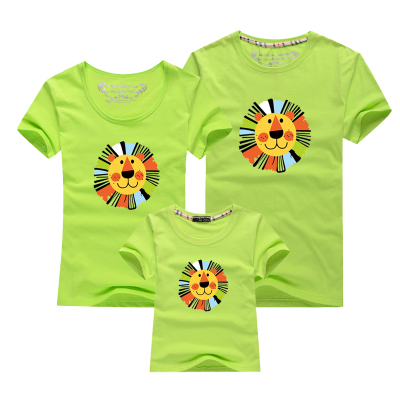 Để lập bản đồ dịch vụ lớp học mùa hè 2018, một gia đình bốn hoặc bốn phụ huynh-con mặc các hoạt động mẫu giáo tay ngắn DIY đầu sư tử áo yếm gia đình Trang phục dành cho cha mẹ và con