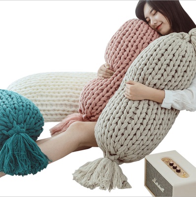 Đệm len Bắc Âu đệm tròn mô hình phòng gối đan đệm màu rắn dệt gối với lõi gối vuông tựa lưng sofa Trở lại đệm / Bolsters