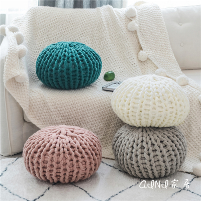 Đệm len Bắc Âu đệm tròn mô hình phòng gối đan đệm màu rắn dệt gối với lõi gối vuông tựa lưng sofa