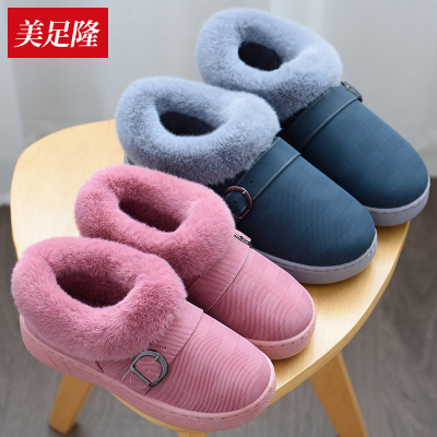 Dép cotton mới 2018 nữ mùa đông nhà dày không thấm nước pu da cộng với nhung ấm chống trơn trượt mang giày cotton tại nhà dép ở nhà