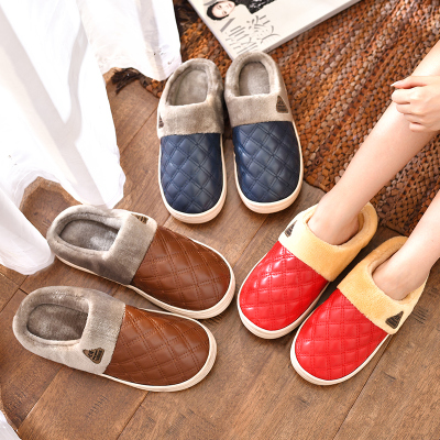 Dép cotton nam mùa đông nhà dày mùa đông nhà dày mùa đông trong nhà cặp đôi chống trượt nam da ấm dép trong nhà Trang chủ