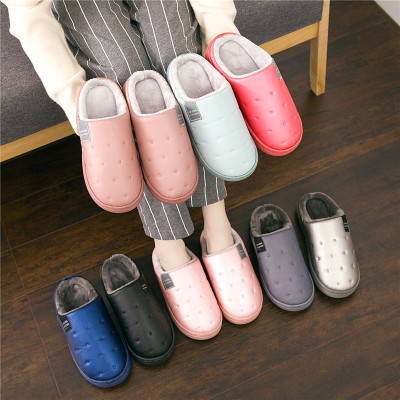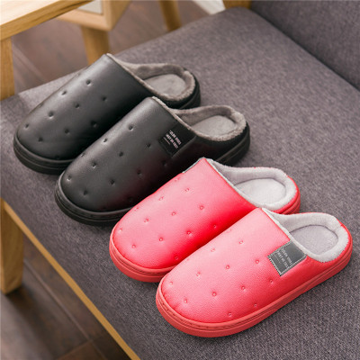 Dép cotton nữ mùa đông trong nhà không thấm nước pu tháng giày chống trượt dày đáy đôi dép da ấm áp nam mùa đông dép mang trong nhà nam Trang chủ