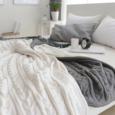 Dệt kim cộng với nhung dày chăn văn phòng ngủ trưa chăn chăn rắn màu mùa thu và mùa đông sofa giải trí chăn - Ném / Chăn chăn nhung tuyết muji Ném / Chăn