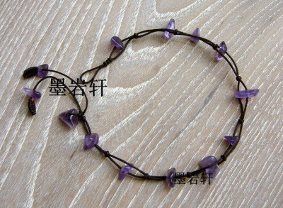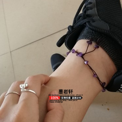 Dệt thủ công Vòng chân pha lê tự nhiên Amethyst sỏi vòng chân thời trang Dệt thời trang đa năng vòng chân bạc tây tạng
