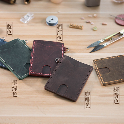 DIY gói nguyên liệu Lanze crazy horse da retro của nhãn hiệu bộ thẻ da thay đổi đơn giản thẻ nhỏ gói bus bộ thẻ ví đựng thẻ