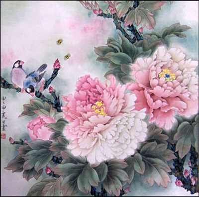 DIY kit mới bắt đầu thêu hoa hoa mẫu đơn và chim Erqiao cỡ lớn sơn tim 35 * 35 đầy đủ chủ đạo - Bộ dụng cụ thêu tranh thêu bình hoa