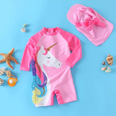 Đồ bơi bé gái, trẻ em, trẻ em, công chúa dễ thương, kem chống nắng một mảnh, em bé nhanh khô, kỳ nghỉ, đi biển, áo tắm dài tay - Đồ bơi trẻ em đồ bơi cho bé gái