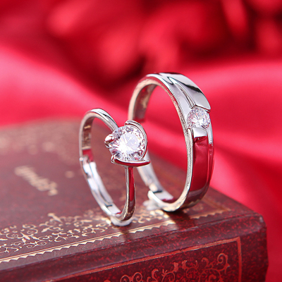 Đồ cưới, nhẫn, mô phỏng, nhẫn kim cương giả, đạo cụ cưới, nhẫn cưới, nhẫn đôi, một đôi mở, trang sức nam nữ nhẫn bạc Nhẫn