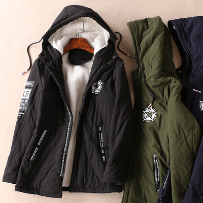 Đồ lót dày da cừu thanh niên giản dị áo trùm đầu mùa đông nam cotton phù hợp với áo khoác cotton dày thủy triều WB87 - Bông áo khoác jean